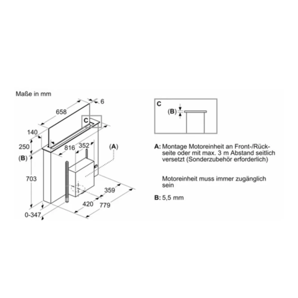 Integrierter Glas Dunstabzug aus der Serie 8, HxBxT: 703×781,0x123 mm, mit versenkbarer Glasscheibe