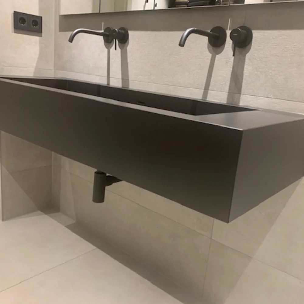 Waschtisch Keramik matt schwarz, BxTxH: 140×52,1×20,2 cm, Beckengröße: 109,8×39,6 cm